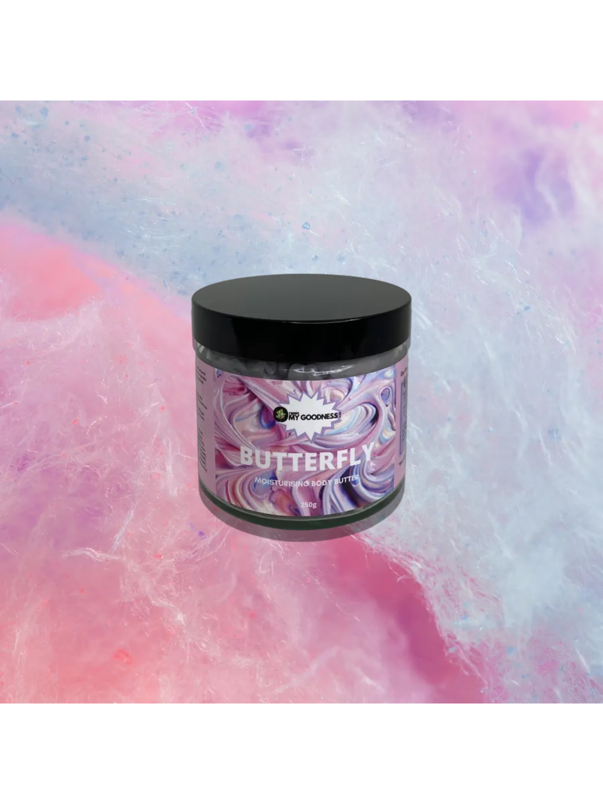A ‘Bubblegum Body Butter‘ moisturizes the skin without harsh chemicals and GMO ingredients. Hydrates dry skin for a more vibrant, quenched complexion.